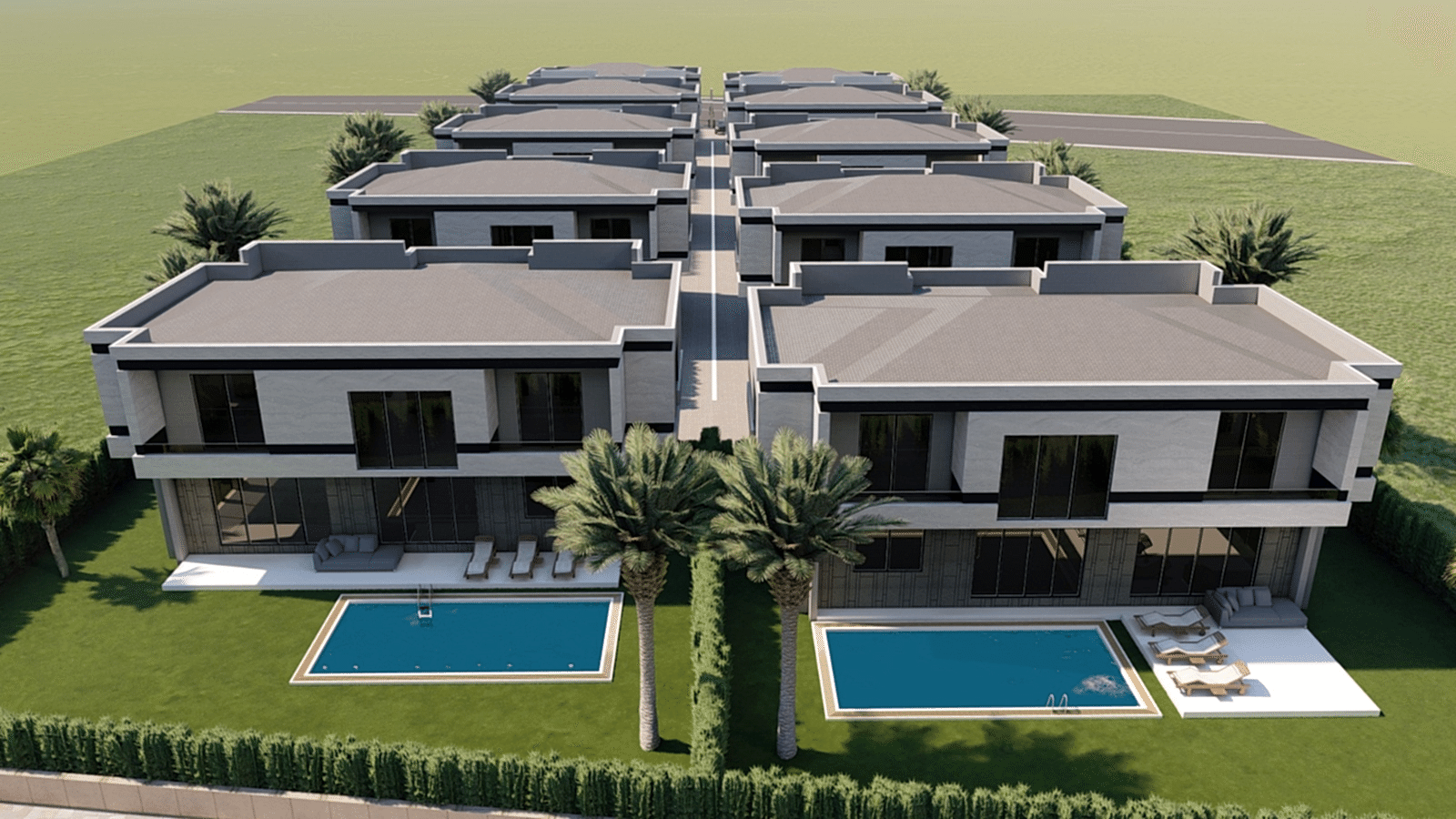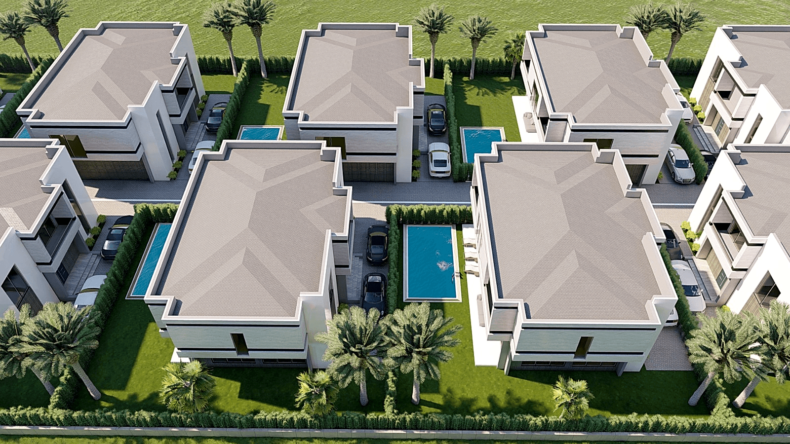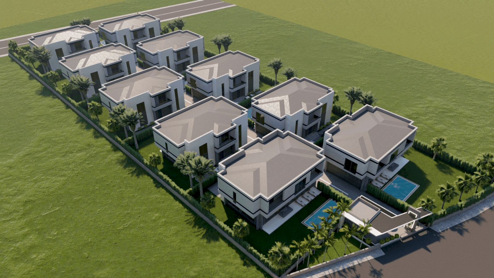 310 m2 4+1 Dublex Villalar4 yatak odası 4 banyo520 m2 arsa payı40 m2 havuz40 m2 terasAçık otopark7/24 Güvenlik
