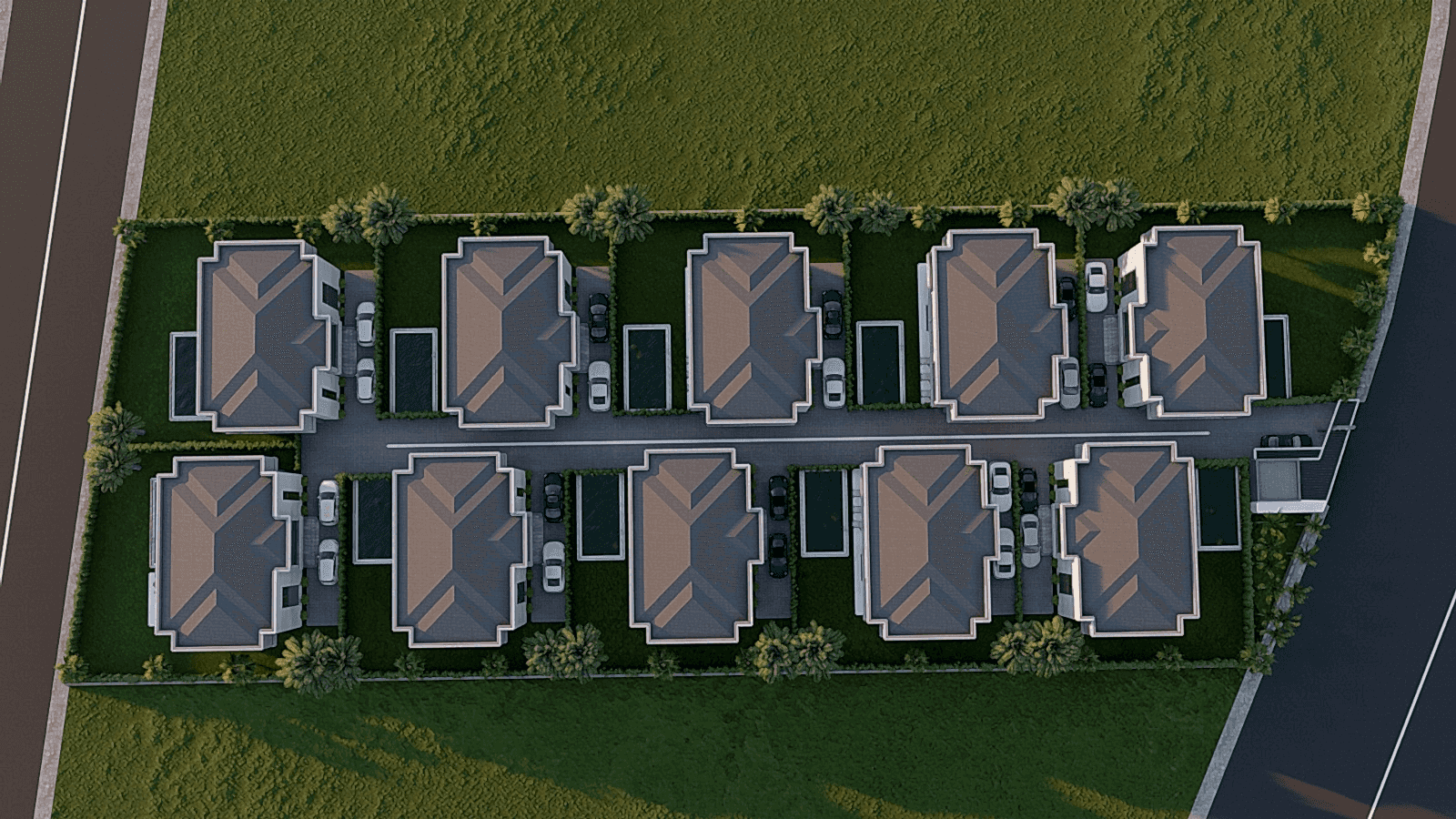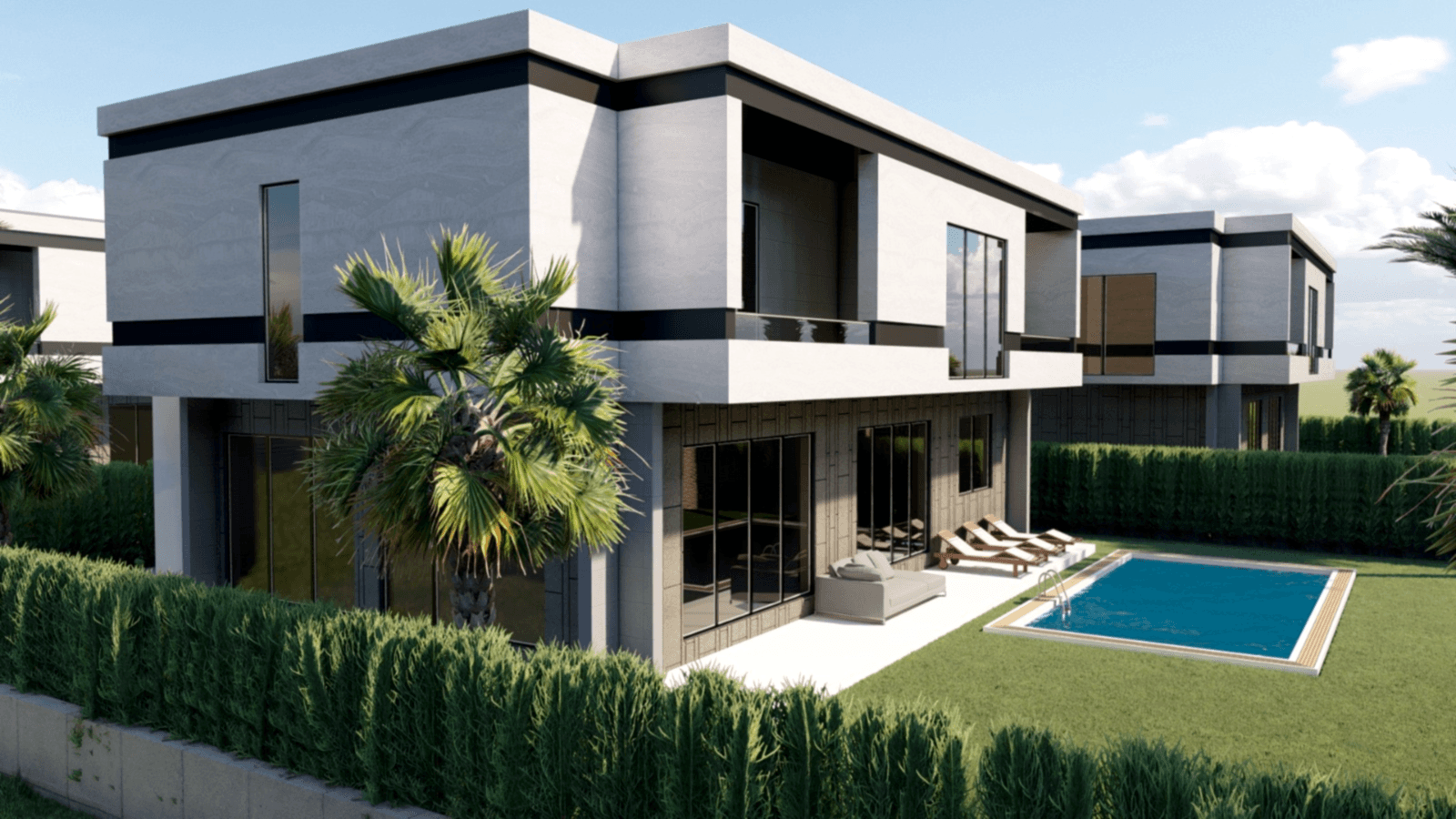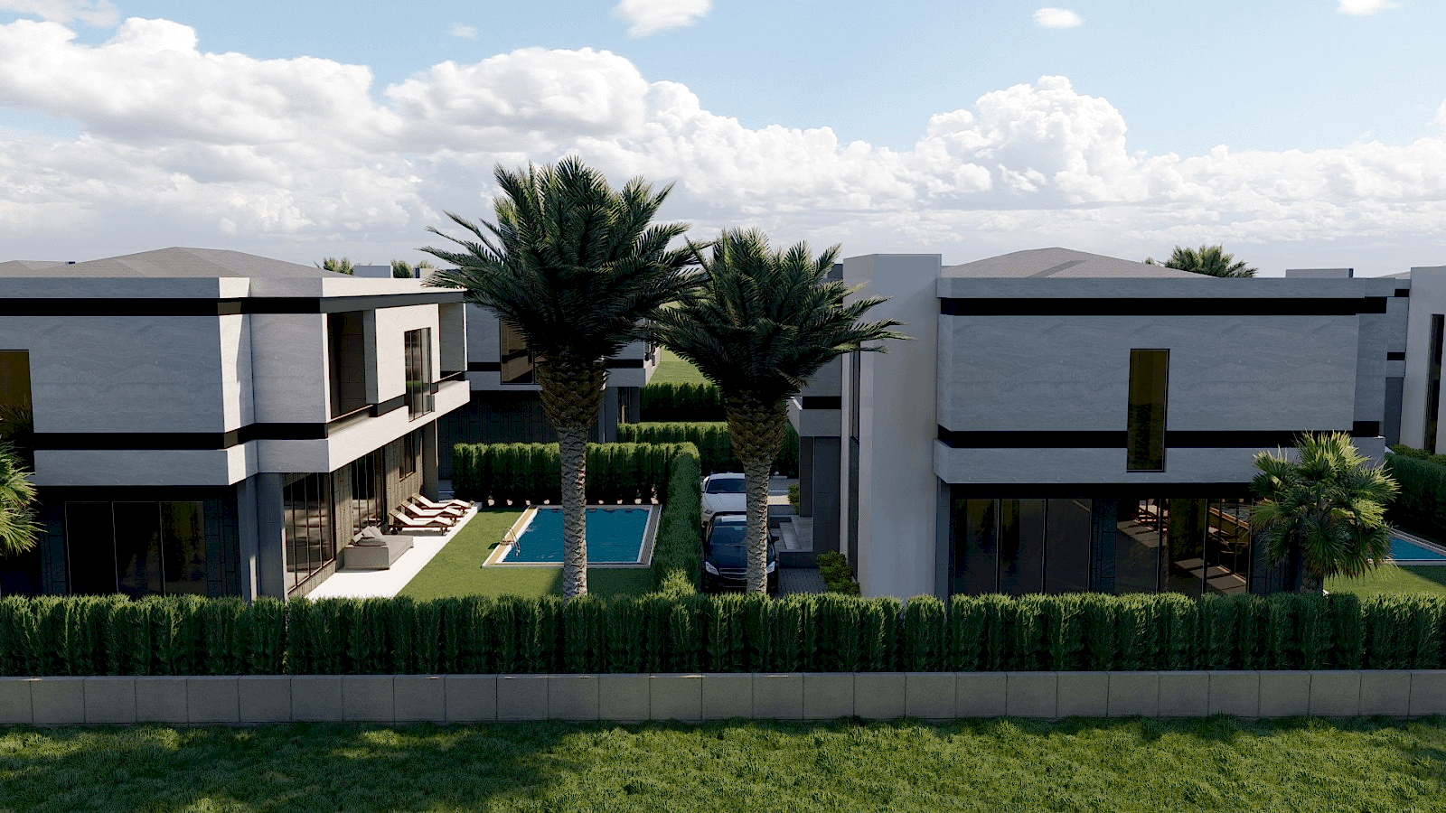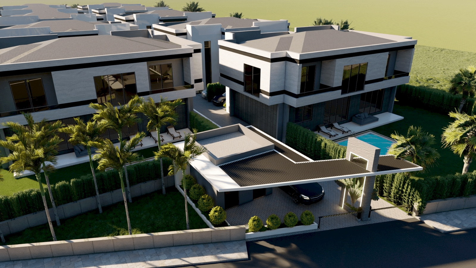 310 m2 4+1 Dublex Villalar4 yatak odası 4 banyo520 m2 arsa payı40 m2 havuz40 m2 terasAçık otopark7/24 Güvenlik